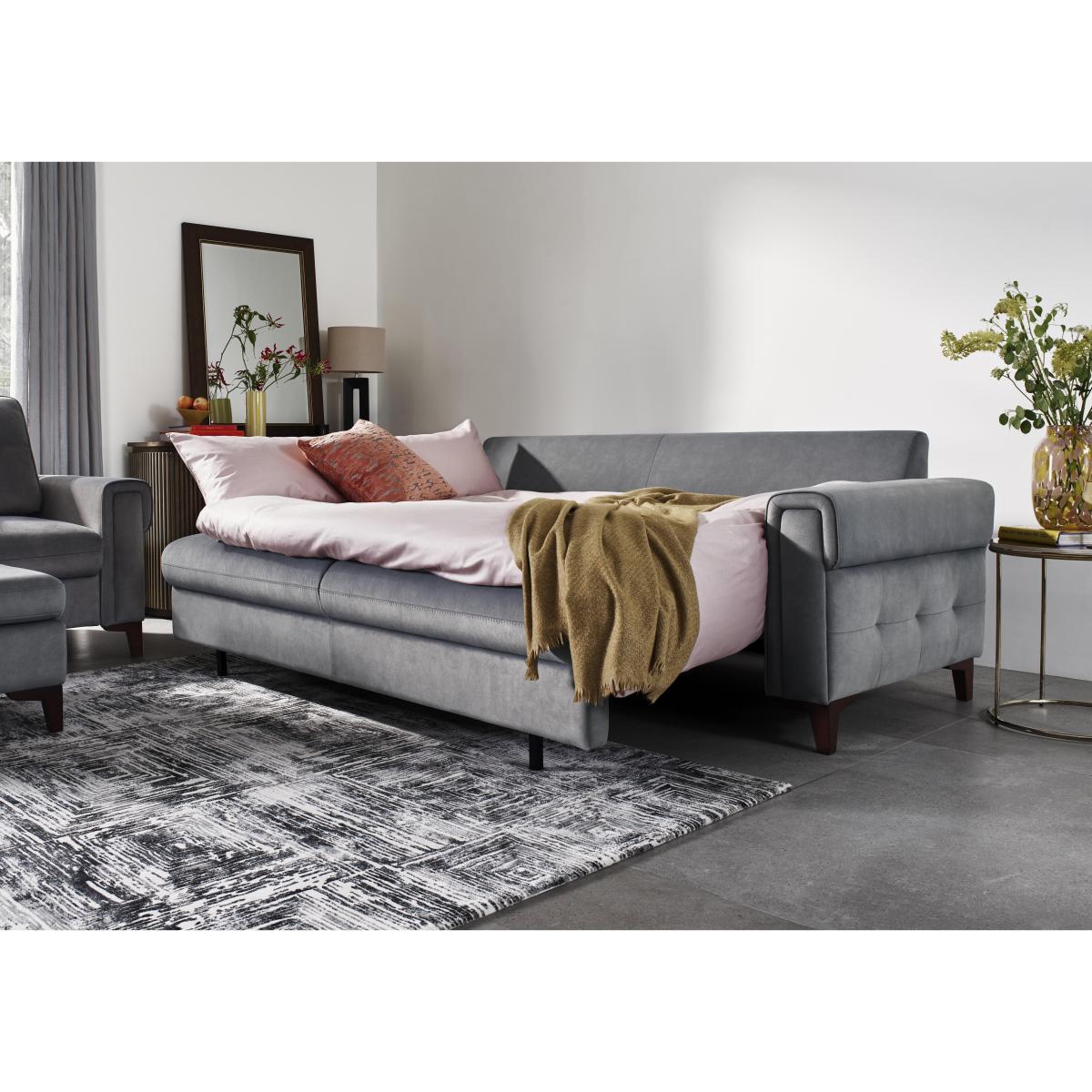 Here’s a range of sofa beds that will make you want to have houseguests more often. Designed for style, comfort and convenience, our Zoom sofa beds and chair beds pull open in seconds with no heavy lifting or cumbersome unfolding required. Mattresses simply pull out like a futon but – dare we say – are much more comfortable. The three-seater sofa bed even converts into a super king size bed, and the pocket spring and foam mattresses promise a delightful night’s sleep. Exclusively available at Furniture Village, the handcrafted Zoom range is offered in both fabric and 100% leather upholstery. This elegant sofa is actually a three-seater sofa bed with a mechanism that’s as smooth as the sofa itself. The bed just pulls out in seconds – no heavy lifting or unfolding required. Why you’ll love it Effortlessly stylish, this sofa bed couldn’t be easier to use. Converts in seconds to a super king size bed with a simple pull-out action. Striking contemporary design with classic details. Wide square arms, elegant buttoning detail and wooden legs. Exceptionally comfortable with pocket sprung seat and cushioning. Fabulous pocket spring and foam mattress. In a range of sophisticated modern upholstery fabrics. Also available upholstered in 100% leather. Handcrafted exclusively for Furniture Village. This 3-seater sofa bed is part of our Zoom range. What you need to know Medium comfort level. Seat suspension: zig-zag springs. Seat cushioning: pocket coil spring, high-resilience foam. Cushioning is fixed. Back suspension: zig-zag springs. Back cushioning: fibre. Arm cushioning: foam. Mattress: pocket coil spring, high-resilience foam. Please follow sofa bed opening instructions carefully. Forcing the mechanism will cause damage. This sofa bed’s ratchets will make a clicking sound while being adjusted. This is not a fault. Upholstery will be slightly relaxed to facilitate sofa bed mechanism. This sofa bed has a 1-piece frame. Please measure carefully to ensure adequate access for our delivery team. Plump cushions regularly to promote longer cushion life. Some fabrics can show wear on areas of more use or in direct sunlight. Pile crush and shading are natural characteristics of velvet. Clean regularly using a soft brush or vacuum with the curtain attachment. Deal with any spills promptly. Professional cleaning advised for oil- and grease-based stains. Please read our upholstery care guide for more advice. Item code: ZOOM3SSBFAB-004