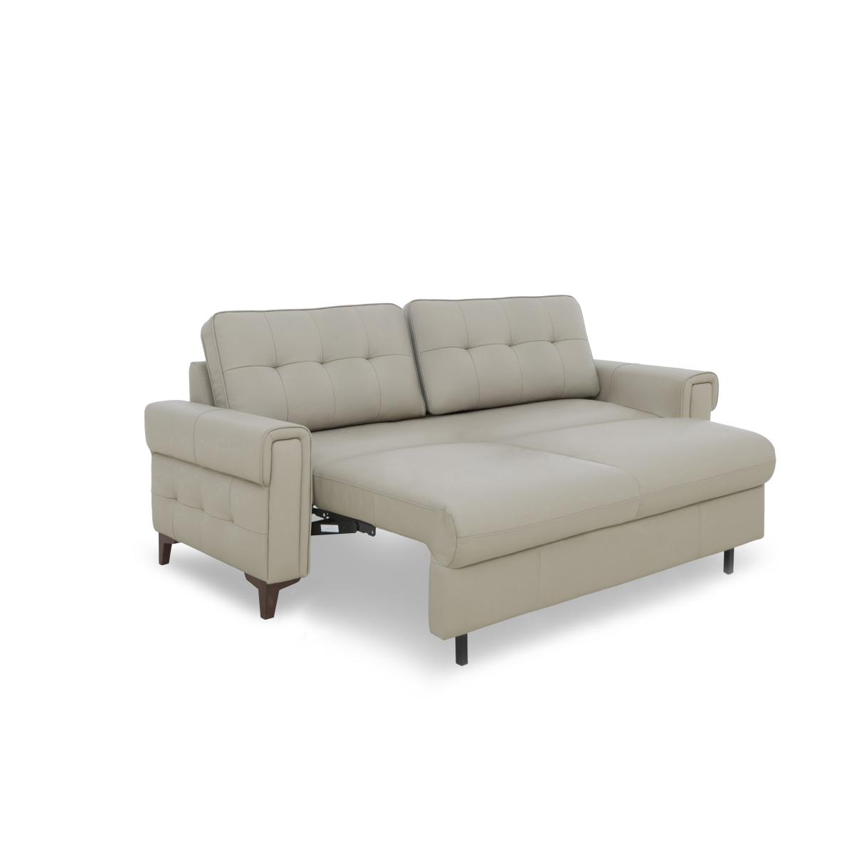 Here’s a range of sofa beds that will make you want to have houseguests more often. Designed for style, comfort and convenience, our Zoom sofa beds and chair beds pull open in seconds with no heavy lifting or cumbersome unfolding required. Mattresses simply pull out like a futon but – dare we say – are much more comfortable. The three-seater sofa bed even converts into a super king size bed, and the pocket spring and foam mattresses promise a delightful night’s sleep. Exclusively available at Furniture Village, the handcrafted Zoom range is offered in both fabric and 100% leather upholstery. Beautifully upholstered in 100% leather, this elegant three-seater sofa bed has a super-fast and easy mechanism that transforms it from sofa to bed in mere seconds. Why you’ll love it Effortlessly stylish, this leather sofa bed couldn’t be easier to use. Converts in seconds to a super king size bed with a simple pull-out action. Striking contemporary design with classic details. Wide square arms, elegant buttoning detail and wooden legs. Exceptionally comfortable with pocket sprung seat and cushioning. Fabulous pocket spring and foam mattress. Upholstered in 100% leather in a choice of colours. Handcrafted exclusively for Furniture Village. This 3-seater leather sofa bed is part of our Zoom range. What you need to know Medium comfort level. Seat suspension: zig-zag springs. Seat cushioning: pocket coil spring, high-resilience foam. Cushioning is fixed. Back suspension: zig-zag springs. Back cushioning: fibre. Arm cushioning: foam. Mattress: pocket coil spring, high-resilience foam. Please follow sofa bed opening instructions carefully. Forcing the mechanism will cause damage. This sofa bed’s ratchets will make a clicking sound while being adjusted. This is not a fault. Upholstery will be slightly relaxed to facilitate sofa bed mechanism. This sofa bed has a 1-piece frame. Please measure carefully to ensure adequate access for our delivery team. Plump cushions regularly to promote longer cushion life. Leather has unique marks and characteristics with variation in colour and texture. Leather softens with use. To smooth and straighten fixed cushions, punch the back cushion’s top two corners and the seat cushion’s outer two corners, and pinch outwards. Please read our upholstery care guide for more advice. Item code:ZOOM3SSBLTH-010