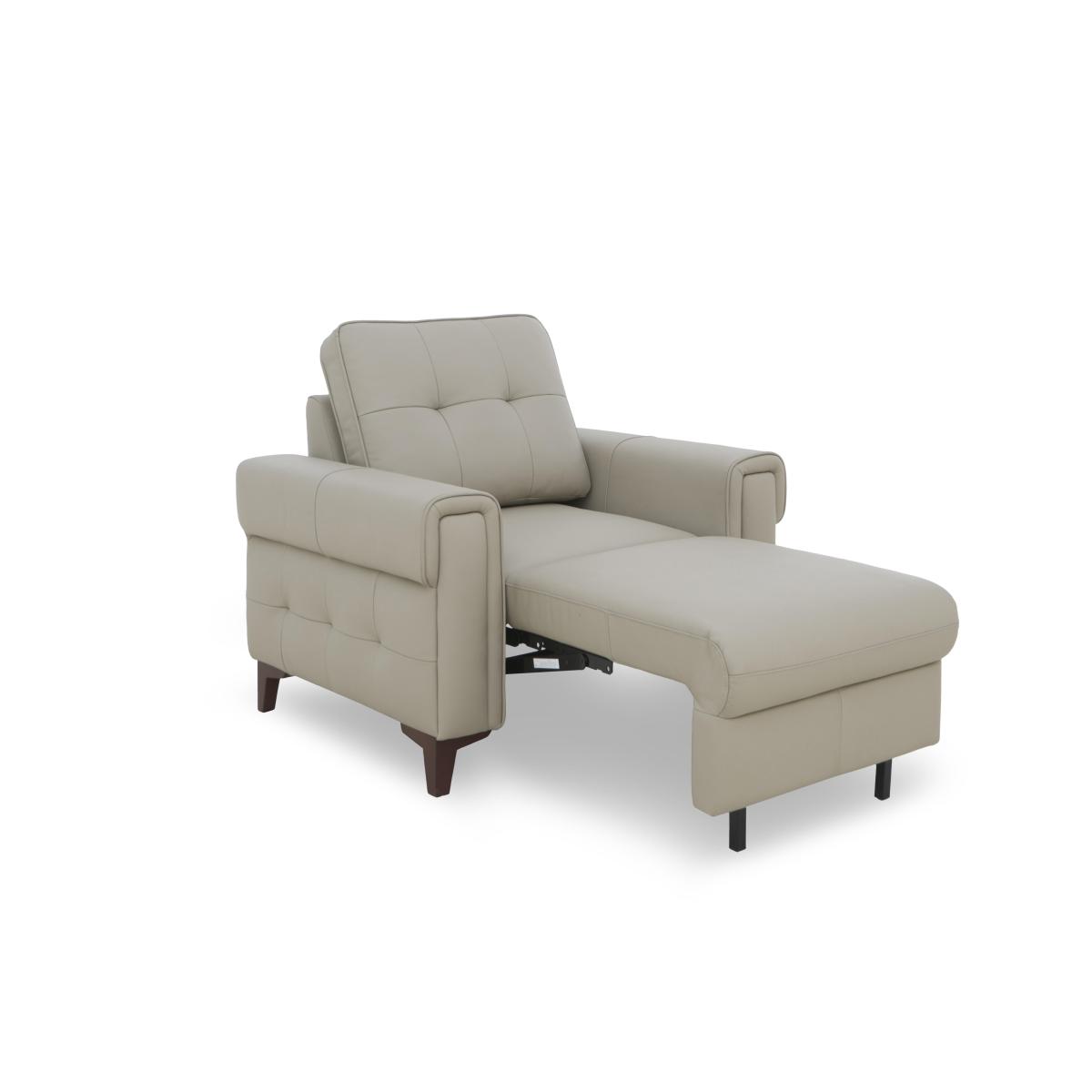 Here’s a range of sofa beds that will make you want to have houseguests more often. Designed for style, comfort and convenience, our Zoom sofa beds and chair beds pull open in seconds with no heavy lifting or cumbersome unfolding required. Mattresses simply pull out like a futon but – dare we say – are much more comfortable. The three-seater sofa bed even converts into a super king size bed, and the pocket spring and foam mattresses promise a delightful night’s sleep. Exclusively available at Furniture Village, the handcrafted Zoom range is offered in both fabric and 100% leather upholstery. Looking for a leather armchair? This one is wonderfully comfy, effortlessly stylish and converts into a chair bed with a luxury pocket spring and foam mattress in one simple movement. Why you’ll love it Effortlessly stylish, this leather chair sofa bed couldn’t be easier to use. Converts in seconds to a bed with a simple pull-out action. Striking contemporary design with classic details. Wide square arms, elegant buttoning detail and wooden legs. Exceptionally comfortable with pocket sprung seat and cushioning. Fabulous pocket spring and foam mattress. Upholstered in 100% leather in a choice of colours. Handcrafted exclusively for Furniture Village. This leather chair sofa bed is part of our Zoom range. What you need to know Medium comfort level. Seat suspension: zig-zag springs. Seat cushioning: pocket coil spring, high-resilience foam. Cushioning is fixed. Back suspension: zig-zag springs. Back cushioning: fibre. Arm cushioning: foam. Mattress: pocket coil spring, high-resilience foam. Please follow sofa bed opening instructions carefully. Forcing the mechanism will cause damage. This sofa bed’s ratchets will make a clicking sound while being adjusted. This is not a fault. Upholstery will be slightly relaxed to facilitate sofa bed mechanism. This sofa bed has a 1-piece frame. Please measure carefully to ensure adequate access for our delivery team. Plump cushions regularly to promote longer cushion life. Leather has unique marks and characteristics with variation in colour and texture. Leather softens with use. To smooth and straighten fixed cushions, punch the back cushion’s top two corners and the seat cushion’s outer two corners, and pinch outwards. Please read our upholstery care guide for more advice. Item code: ZOOMCHSBLTH-016