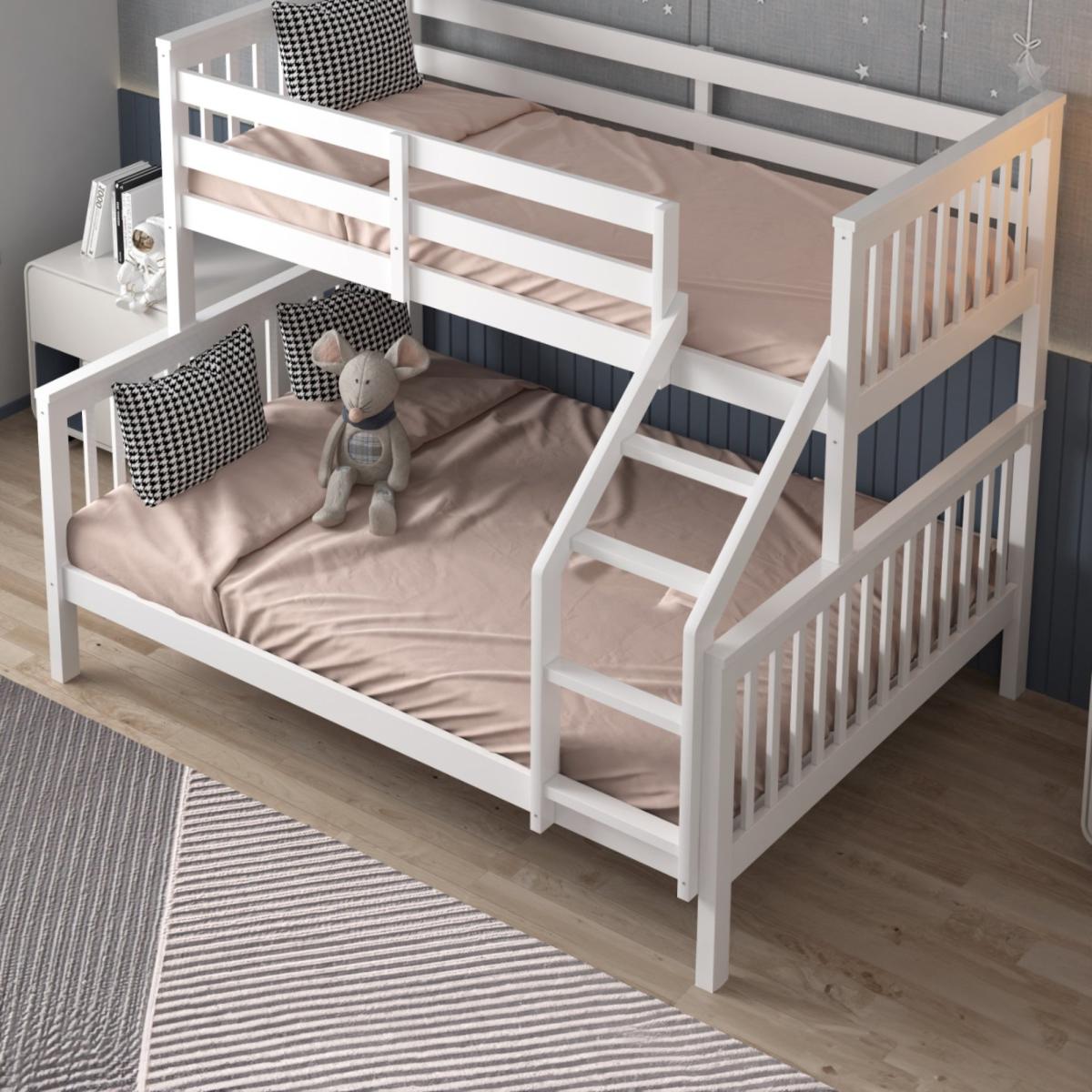 * 1 x Single bunk and 1 x Double bed* Slatted base This bed features classic design with a modern, minimalist shaker-style aesthetic. This expertly crafted piece accommodates a single mattress on the top, a double mattress beneath, and provides generous underbed storage space, ensuring both functionality and elegance.