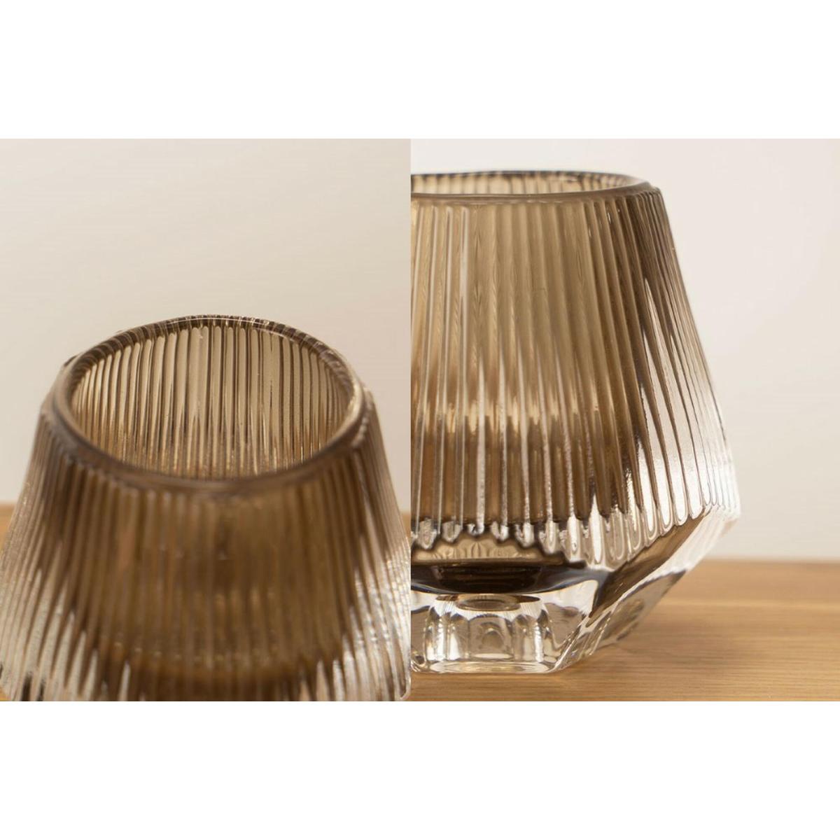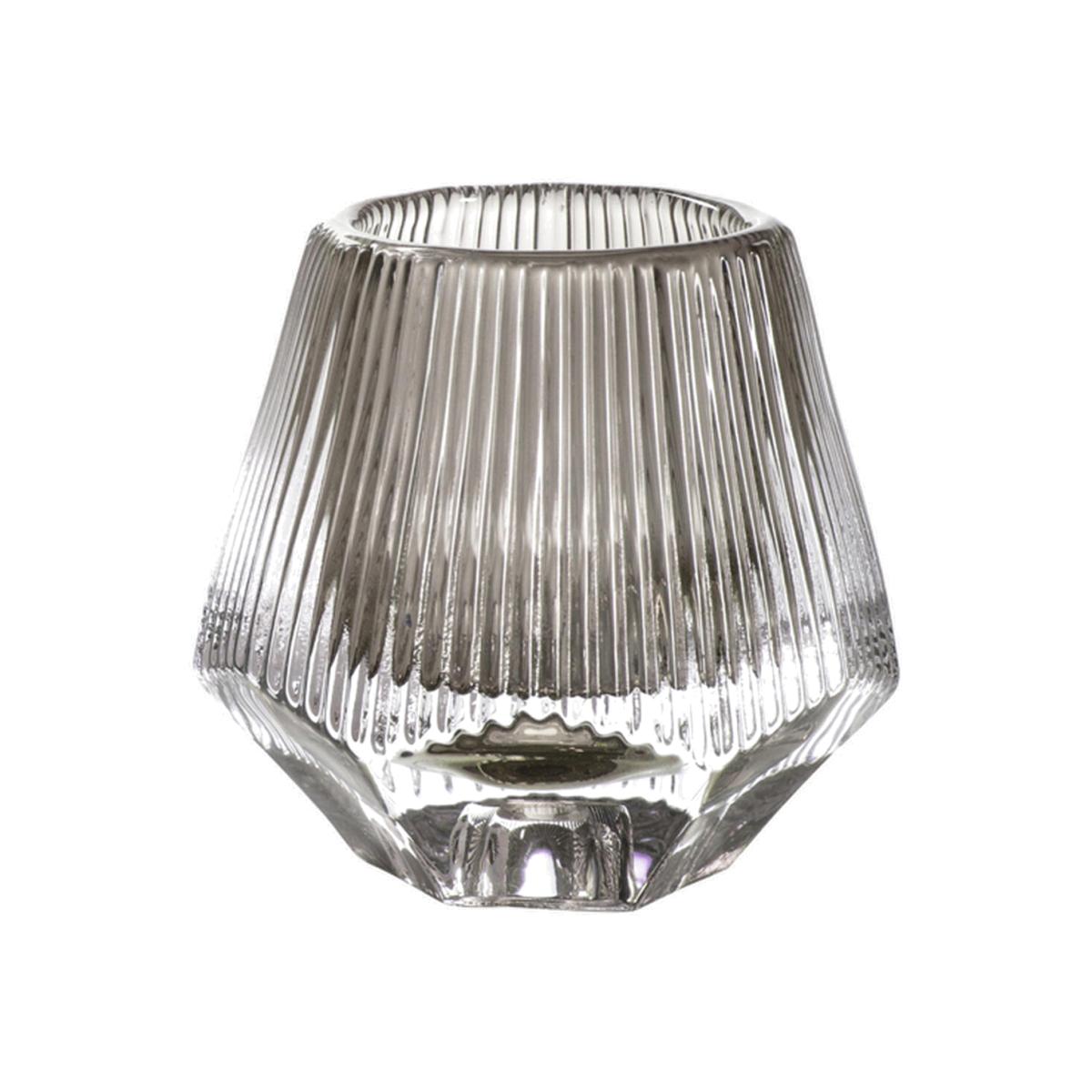 I really like this tealight holder because of its clean, modern design and textured glass that adds a subtle touch of sophistication. It works particularly well in minimalist or contemporary interiors, but its versatility means it can also soften a more industrial or eclectic setting. When styling, consider grouping the three together for a strong visual impact on a dining table or coffee table, or use them separately across shelves or sideboards for a more understated look. Pairing it with other textured or matte finishes can create a balanced, layered look, while keeping the overall colour palette neutral to let the tealights and glass details shine.