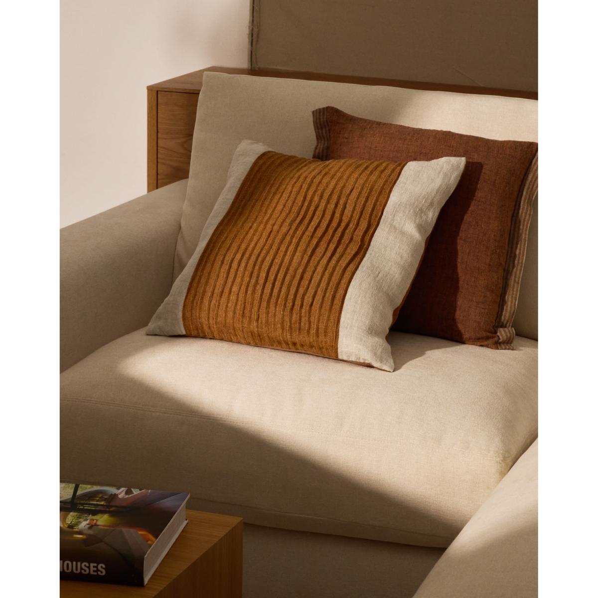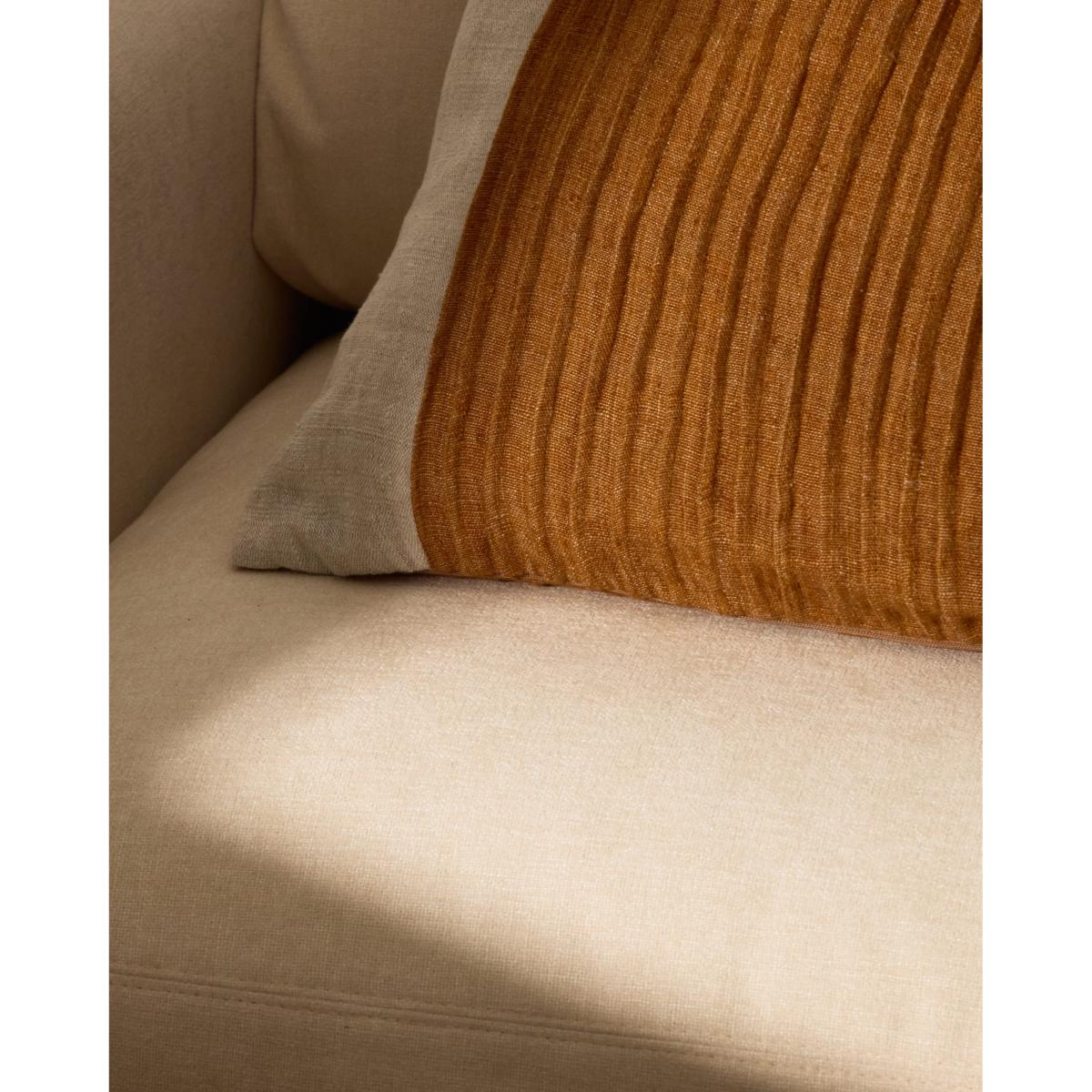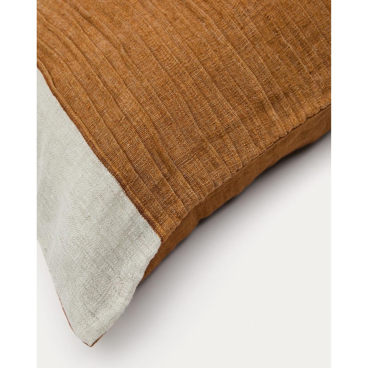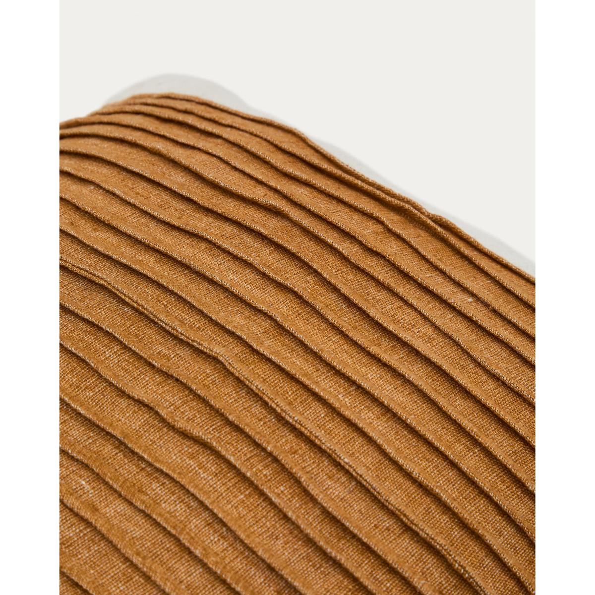 Zoren mustard pleated 100% linen cushion cover 50 x 50cm. This 100% linen cushion stands out for its elegant pleated design, which adds texture and sophistication to any space. Its refined finish and high-quality composition make it an ideal piece for decorating sofas, armchairs or beds with a unique touch. A versatile and timeless detail that elevates the aesthetics of your home.
