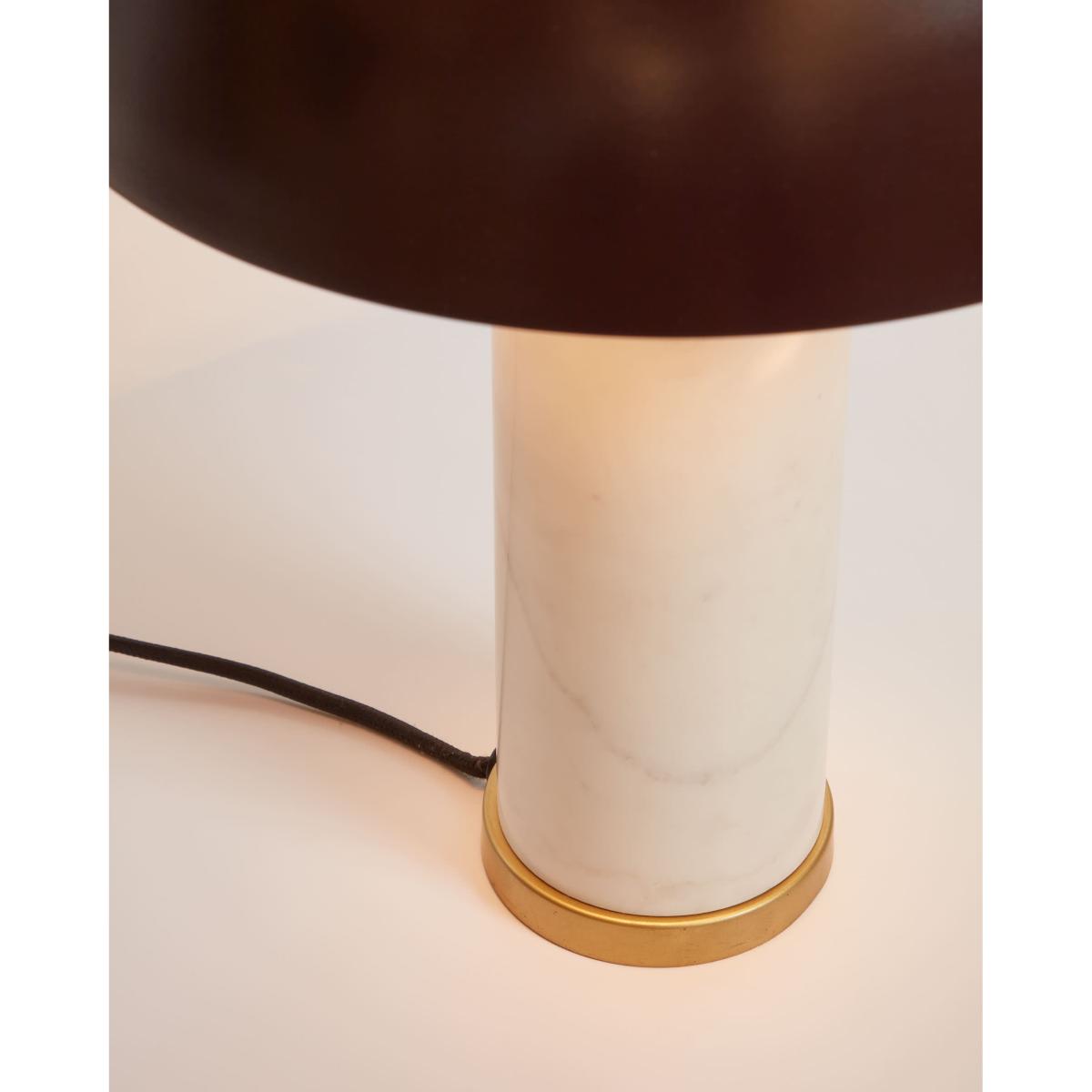Zorione table lamp in white marble and metal, with a painted brown finish. With UK adaptor