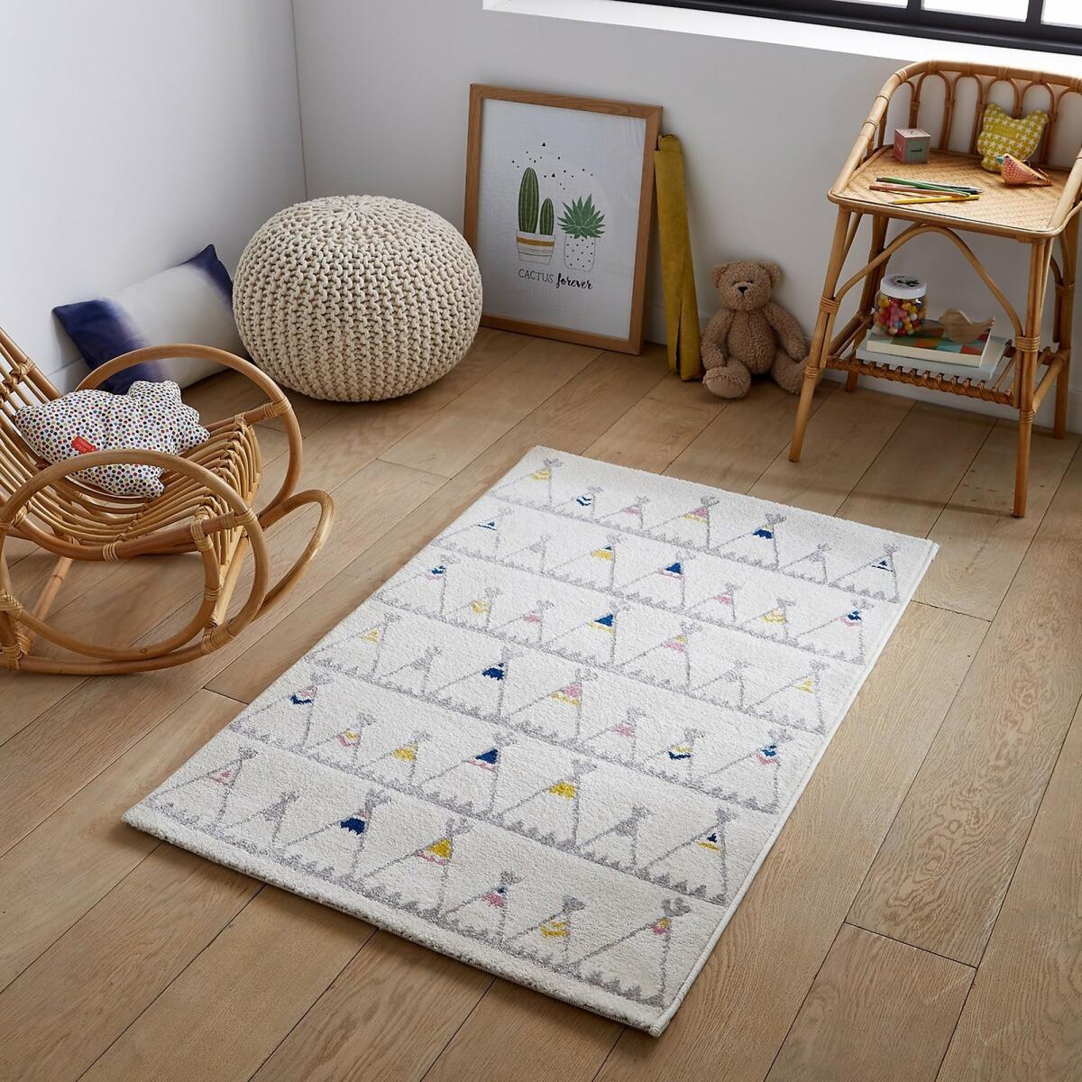 I love this little kids’ rug for its playful teepee motifs and soft colour palette, which adds a charming touch to any nursery or playroom. It works well in both contemporary and boho interiors, creating a cosy, inviting atmosphere for little ones. When styling, consider pairing it with simple furniture and pastel or neutral tones to let the design stand out, or layer it with textured cushions and throws for a more tactile look. Practical tip: its size makes it versatile for defining a corner or creating a soft play area, and choosing a rug with a durable, easy-care material will ensure it stays looking fresh amid everyday use.