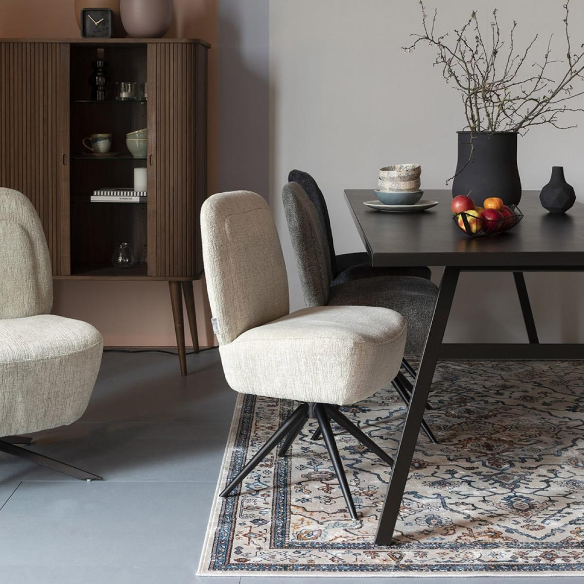 In the words of Kylie, you'll be "spinning around" with the Dusk Chair by Zuiver. This stylish swivel chair will be the ideal spot for your dinner guests to sit, but a word of warning they may never want to get up! The foam seat and backrest will be a sumptuous delight that will ensure happy faces. And bottoms around the table. With a solid eucalyptus wood frame and sturdy iron legs, even the most seasoned entertainer will enjoy the chairs for many years to come. Available in a choice of colours, why not combine a few contrasting shades to create an eye-catching dining display.