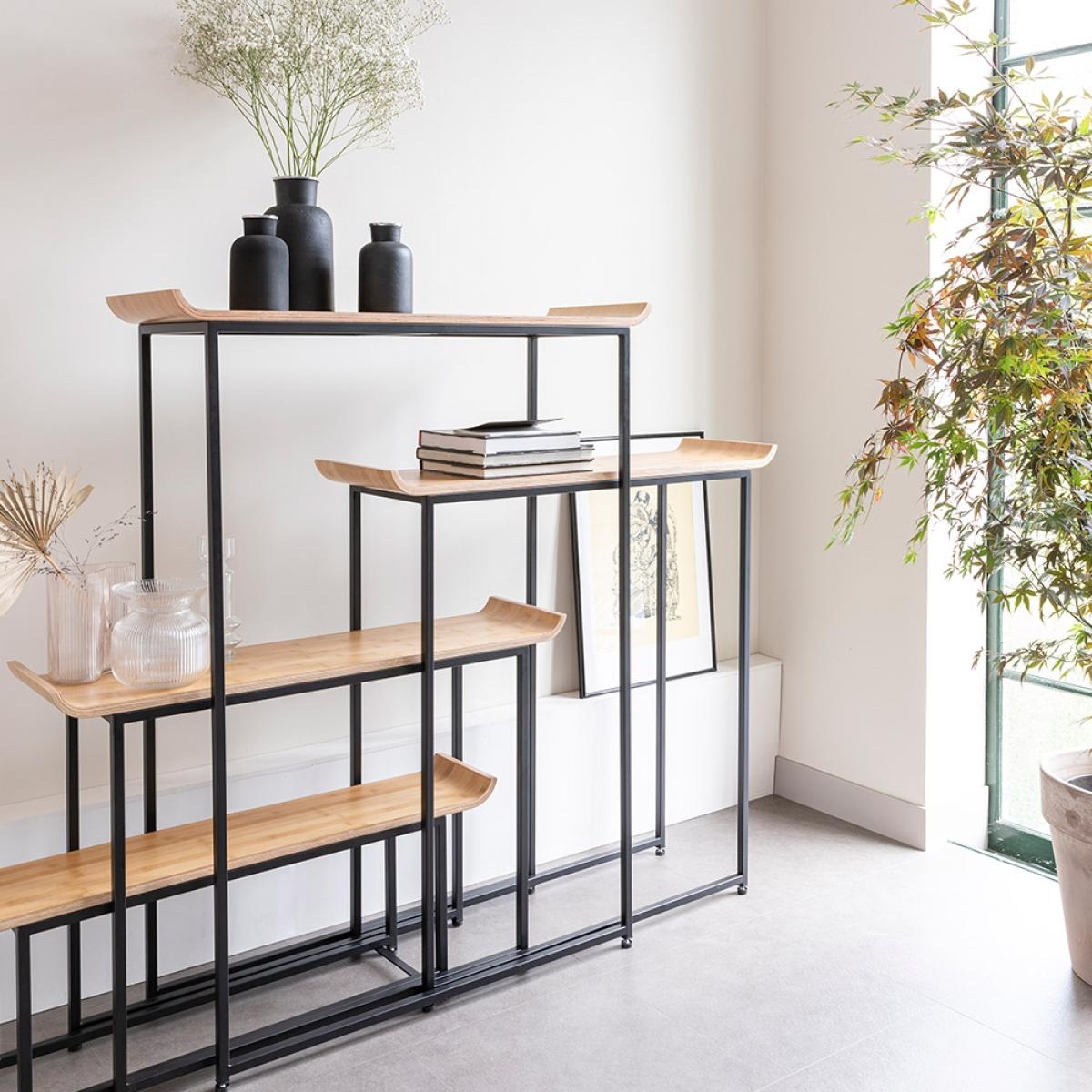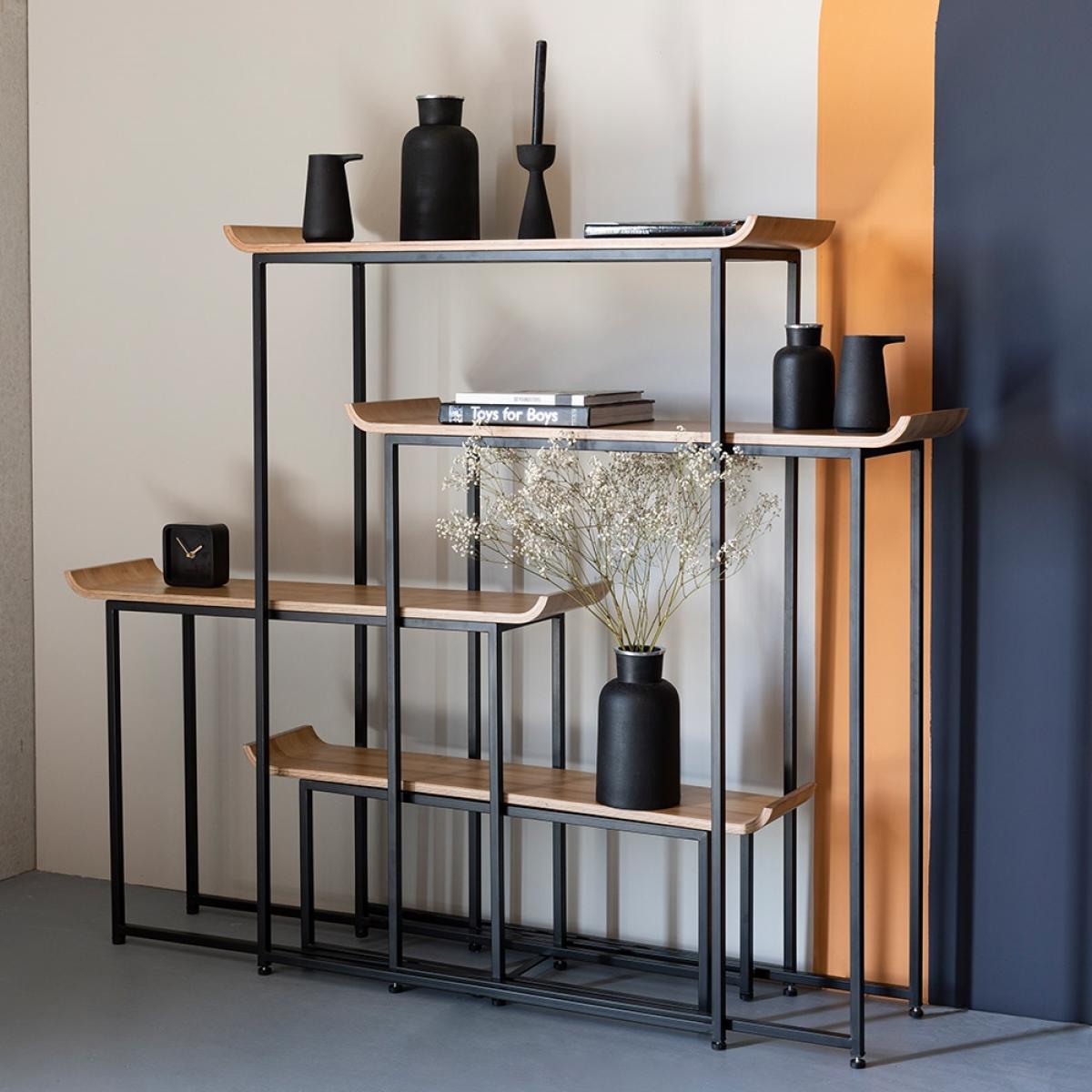 Not only is the Flodka Cabinet from Zuiver offering up some serious style, oh no! This beauty has functionality going for it too! Comprising of four separate shelves, pull them slightly apart or just a little bit more or a wee bit more or you could go crazy and scatter them throughout your home! However you choose to style them, Flodka will be more than happy to hold your prized possessions. Finished with a simple black frame and bamboo veneered shelves, the curved edges add a flair to this shelving unit that we think will look gorgeous wherever you place them.