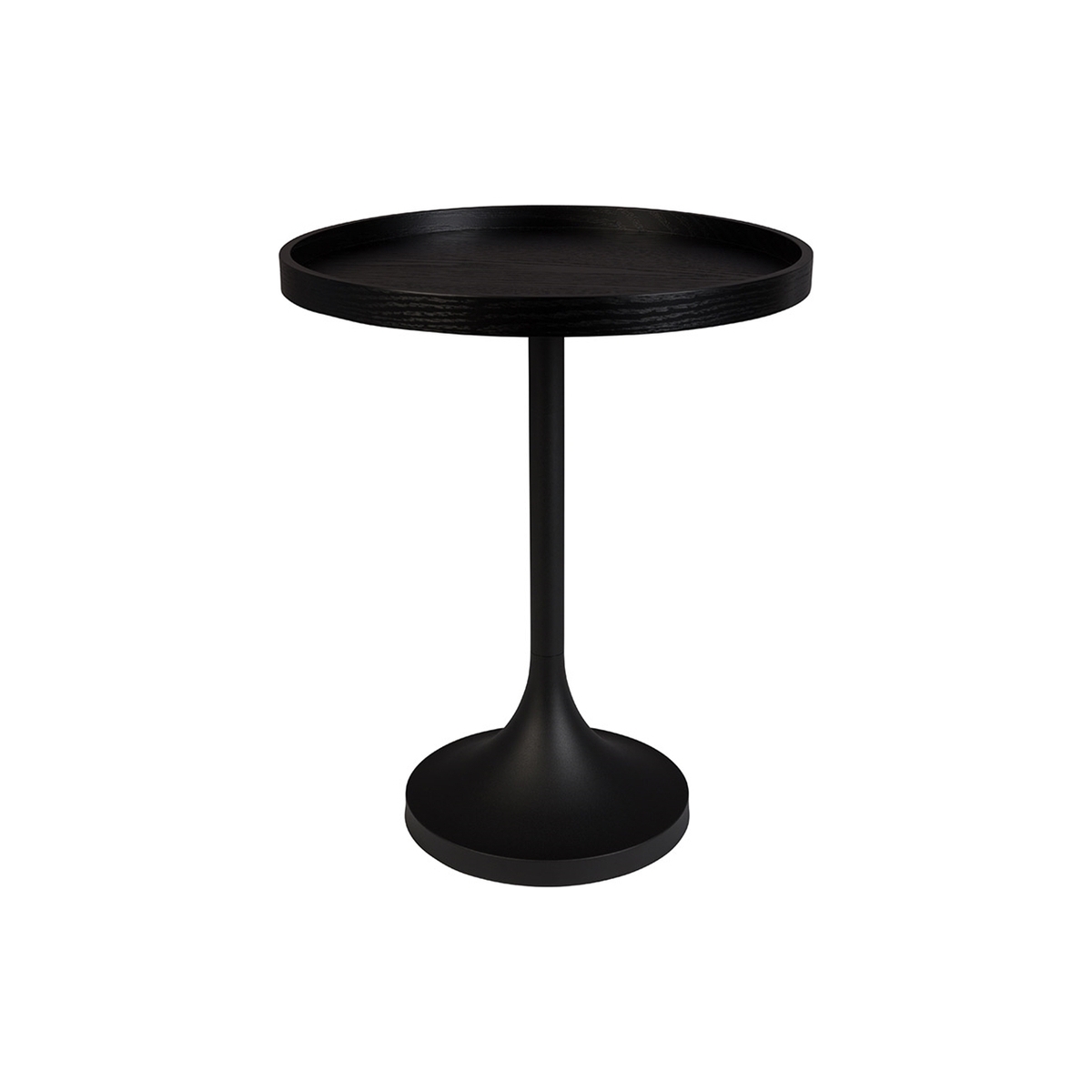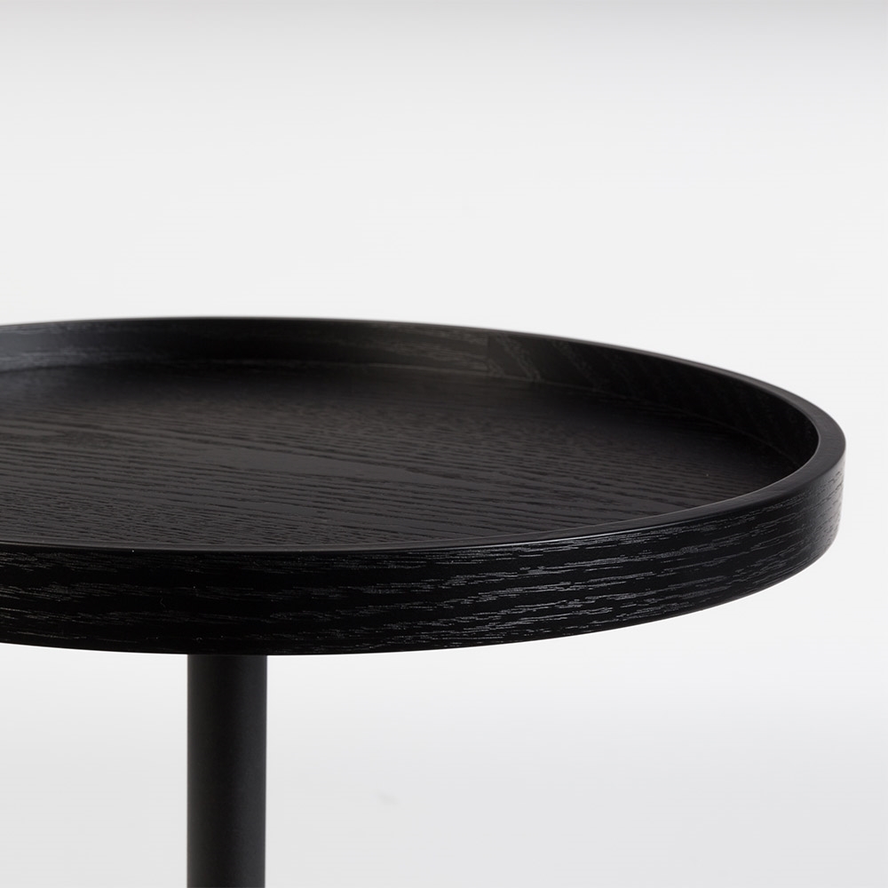 The smooth elegant shape of the Jason Small Side Table would make it a stunning addition to any room. The sleek metal leg paired with the black oak veneered table top gives this little table a lovely design that makes it very easy to place in your home. Perfect to tuck away into your favourite reading corner, somewhere to pop that cup of tea or even as a bedside table. What's more, with the inclusion of a raised lip, drinks won't go flying off of this snazzy table.