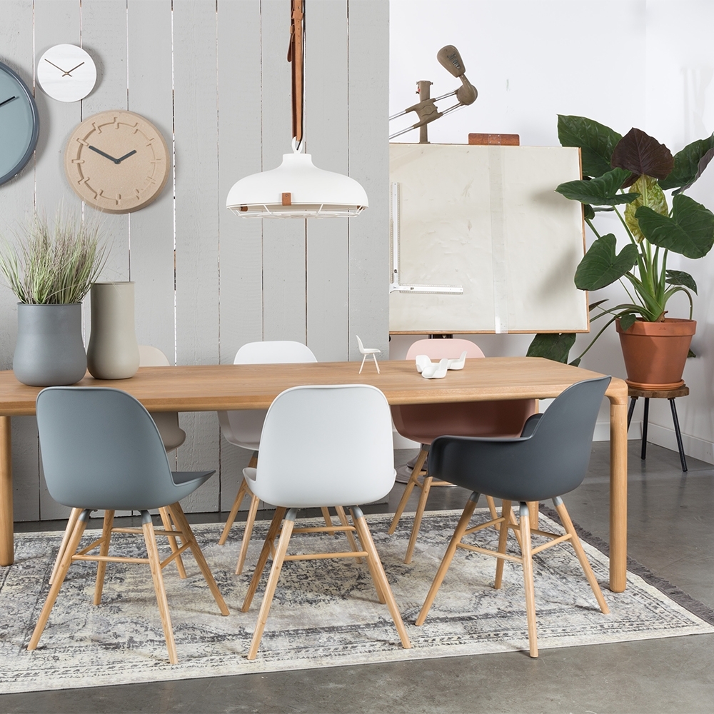 Inspired by the design of the famous Eames chair, but with a distinctive Scandinavian style, the Albert Kuip Dining Chairs from Zuiver offer a unique look; a comfortable ergonomic seat fused with elegant solid ash wood legs. These awesome chairs are the work of Zuiver and Dutch Design Studio APE, and we think they're a beauty. With 6 gorgeous colours to choose from and a choice of having your chair with or without armrests, these chairs are perfect for working and relaxing, use them as a dining chair or desk chair - it's up to you!.