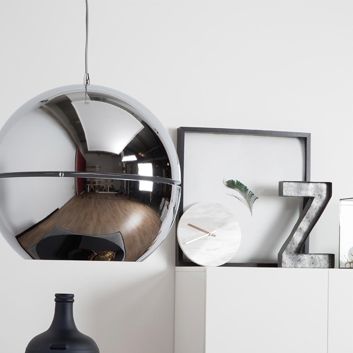 This large chrome pendant makes a real statement, especially in modern or contemporary interiors that embrace a sleek, minimalist aesthetic. I love how its reflective surface adds a touch of glamour and helps bounce light around the room, making it perfect over dining tables, kitchen islands, or even in a chic living space. When styling, consider pairing it with neutral or monochrome colour schemes to really let the metallic finish stand out, or complement it with other chrome or glass accents for a cohesive look. Practical tips include hanging it at a height that allows easy conversation flow, and ensuring the bulb diffuses light softly for creating an inviting atmosphere. It’s a versatile piece that works well in urban, industrial, or even more eclectic interiors, adding a bold yet refined finishing touch.