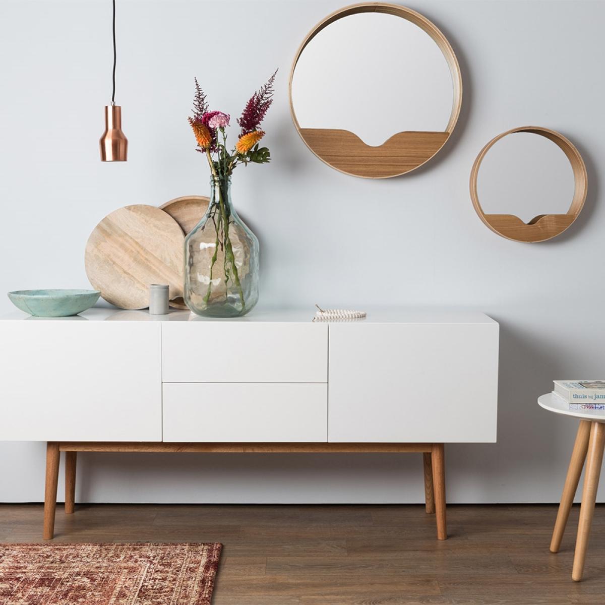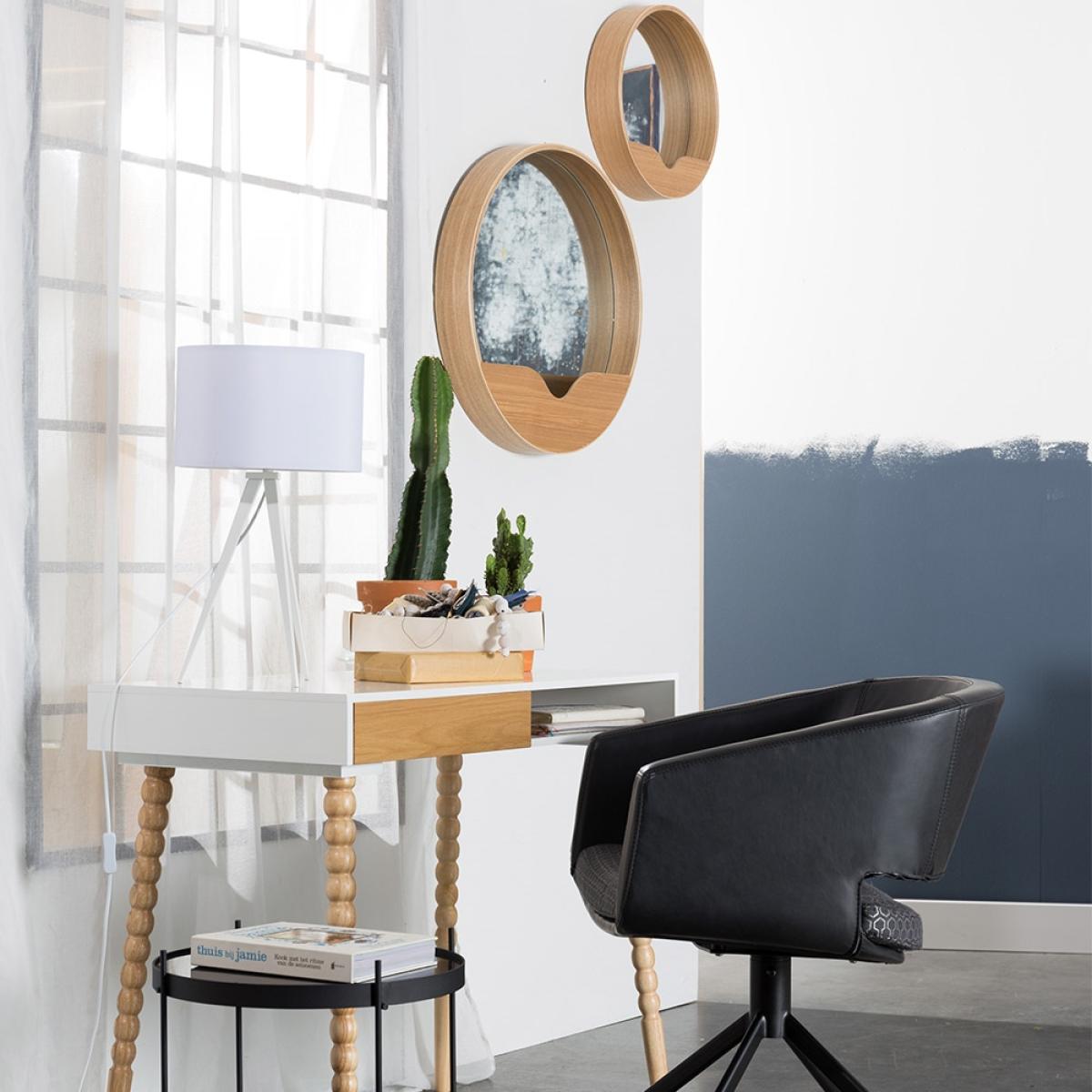 The Retro Round Wall Mirror from Zuiver not only offers up style but also practicality. With the inclusion of a handy compartment; perfect for storing your favourite lipstick or hairbrush, you'll have everything to hand to ensure you look your best before rushing out of the door in the morning! Manufactured from Oak veneer, the beautiful smooth lines would work wonderfully in the bedroom, hallway or even the living room, adding a touch of style to any room. Available in two sizes you are sure to find a space on your wall for this stunner of a mirror.