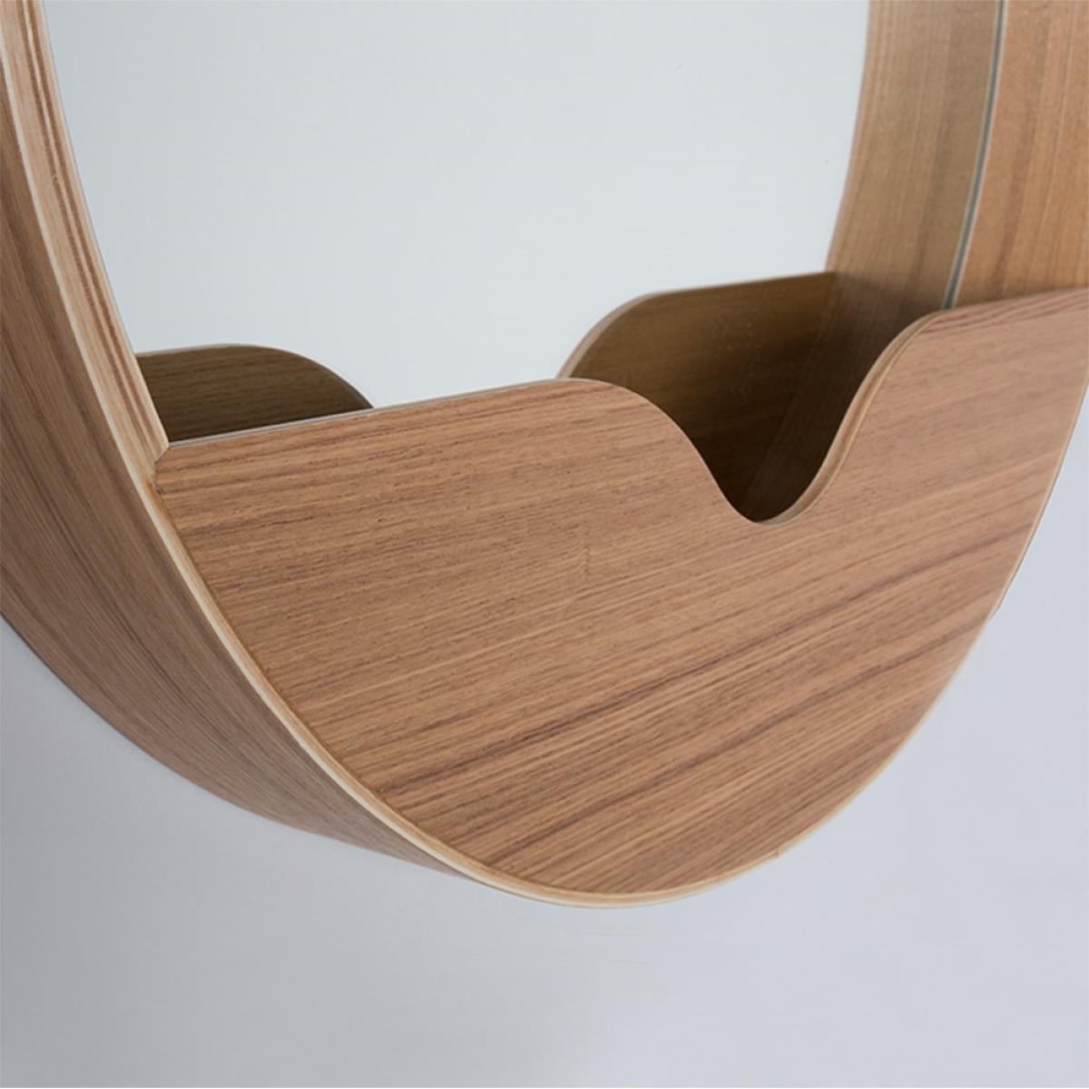 I love this round wall mirror because of its clean, contemporary design with the warm tone of the wood adding a touch of natural texture. It works particularly well in minimalist or Scandinavian interiors, where it can act as a statement piece or complement subtle colour palettes. Practical styling tips include hanging it above a console table or in a hallway to give the illusion of more space, or using it in a bedroom to create a cosy, reflective nook. Its large size makes it versatile for various rooms, while the scalloped detail at the bottom adds a subtle visual interest without overwhelming the overall aesthetic.