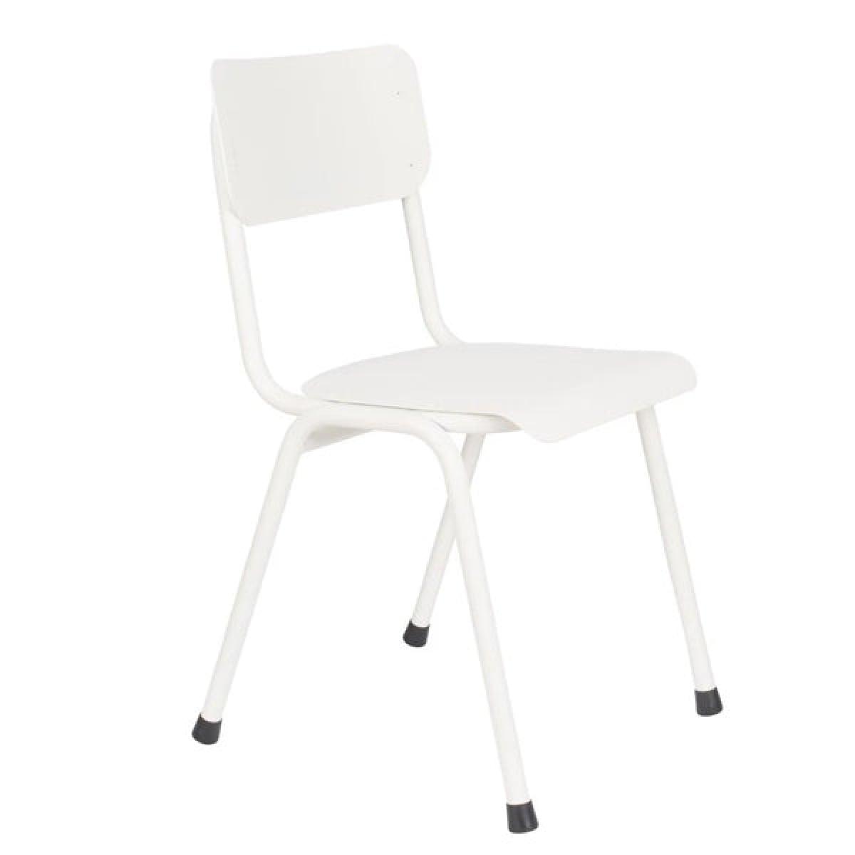 As the name suggests, the Back to School chair by Zuiver is styled on classic wood and steel school chairs that most of us remember. There is nothing wrong with that - they are designed for durability, versatility, comfort, their light weight and the ability to stack them away when not in use. These chairs are also suitable for both indoor and outdoor use. They have a powder coated frame and an attractive plywood back and seat coated with a white top layer for ease of cleaning. Rubber caps cover the feet, making them more stable and gentler on the floor. Dimensions: W:43 x D:49 x H:82.5 cm. Material:Powder coated aluminium frame. Powder coated aluminium seat and back. Rubber caps