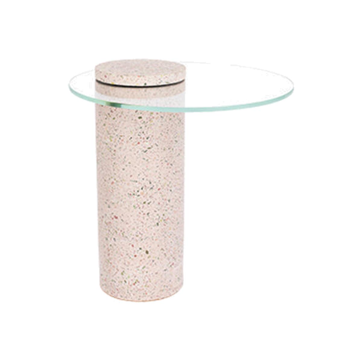 Long live fabulous Eighties style with the Zuiver Rosalina side table. With a clean, futuristic yet retro silhouette, this fresh and cool side table is perfectly poised to add some playful vibes to your space. The terrazzo cylinder table base is intercut with a circular, tempered glass top which is fully rotatable to allow maximum freedom and movement. The cylinder base is also coloured in a beautiful, dusky pink while the terrazzo material adds even more texture and interest. Measuring 44.5cm in height and 40cm in diameter, the Zuvier Rosalina side table is the perfect funky, stylish accessory for bedrooms and living spaces. Outlet items may show some signs of minor cosmetic imperfections Dimensions: H: 44. 5 x Dia: 40 cm Materials: Terrazzo, Glass Assembly Required: Yes