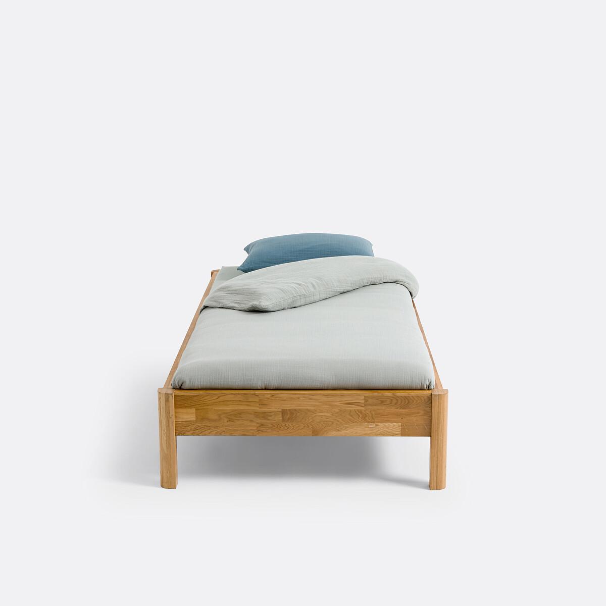 Zulda solid oak bed. Simple and practical, the Zulda single bed is delivered with slats and offers you a comfortable welcome. Product Details • Solid oak finger-joint frame, solid oak legs, oiled finish. • Supplied with slatted base. Dimensions • Width: 100.5cm • Length: 200.5cm • Height: 35cmDelivery:. This product is sold for self-assembly. Parcel dimensions and weight: • 1 parcel • L199 x H22 x D29.5cm, 30.4kg