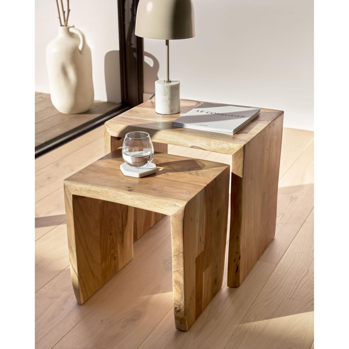 Solid acacia wood's the star of this nesting table design, thanks to its beautiful natural grain. Clean lines & practicality are essential, designed to lend support to any nook or corner of your home.