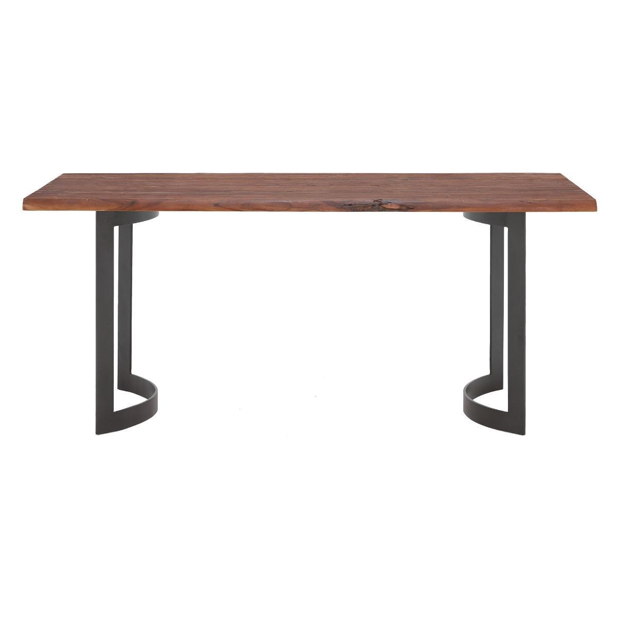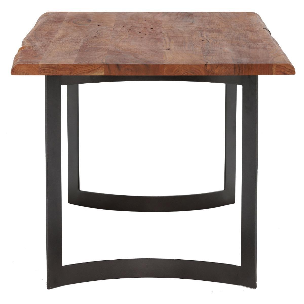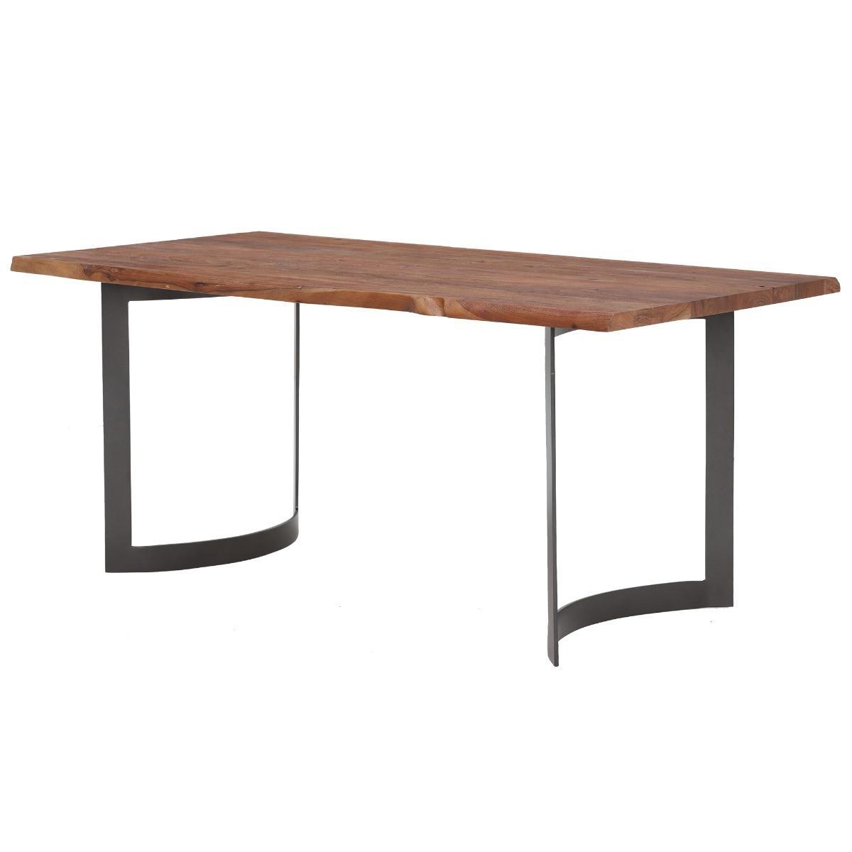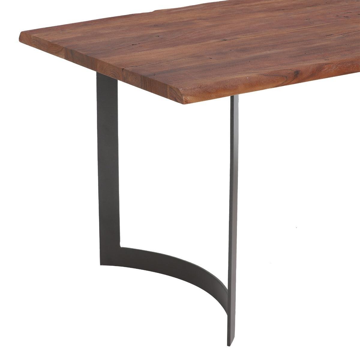 Design. The Zuri Dining Table comprises a classic solid acacia wood top, sitting above curved metal legs which create the illusion of a different look from every angle. This unusual piece allows for 6 chairs to fit around, ideal when it comes to hosting dinner parties and gatherings. The Zuri Dining Table will enhance your space whether it be modern or more classic.