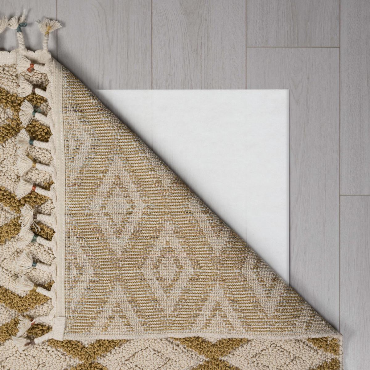 Artisanal tassels and a subtle ochre accent, makes Zuri ideal for getting some vintage style into your space. The tufted design adds an extra element of softness, making this rug perfect for bohemian bedrooms and laid-back living rooms. In 100% polypropylene these rugs are extra hard-wearing, ideal for busy homes. Don't forget to buy our anti-slip mat. Here. , available in a choice of sizes. This is a hard wearing machine-made rug. When opening, re-roll your rug pile out and leave in a warm room for 24 hours before putting in place, this will help to reduce wrinkles and curling from packing. Do not pull any loose threads, please cut them carefully with scissors to remove. Avoid prolonged exposure to direct sunlight as this may cause fading of the colour. Turn your rug regularly to ensure even wear and to reduce pressure marks from furniture. Before using any cleaning products on your rug, test on an inconspicuous area first to ensure it does not affect the colour. Clean spills immediately by blotting with a clean dry white cloth - do not rub as this may stain the fibres. Vacuum your rug regularly to remove everyday dirt, we recommend the use of a suction type vacuum cleaner as a rotating vacuum brush can cause damage to the pile surface.