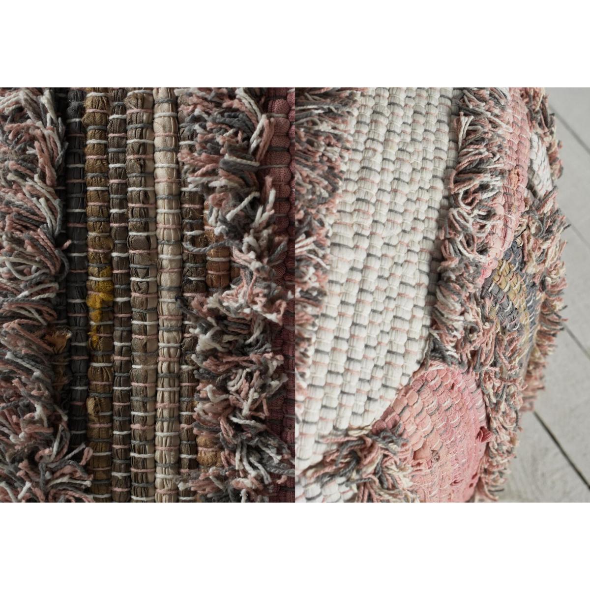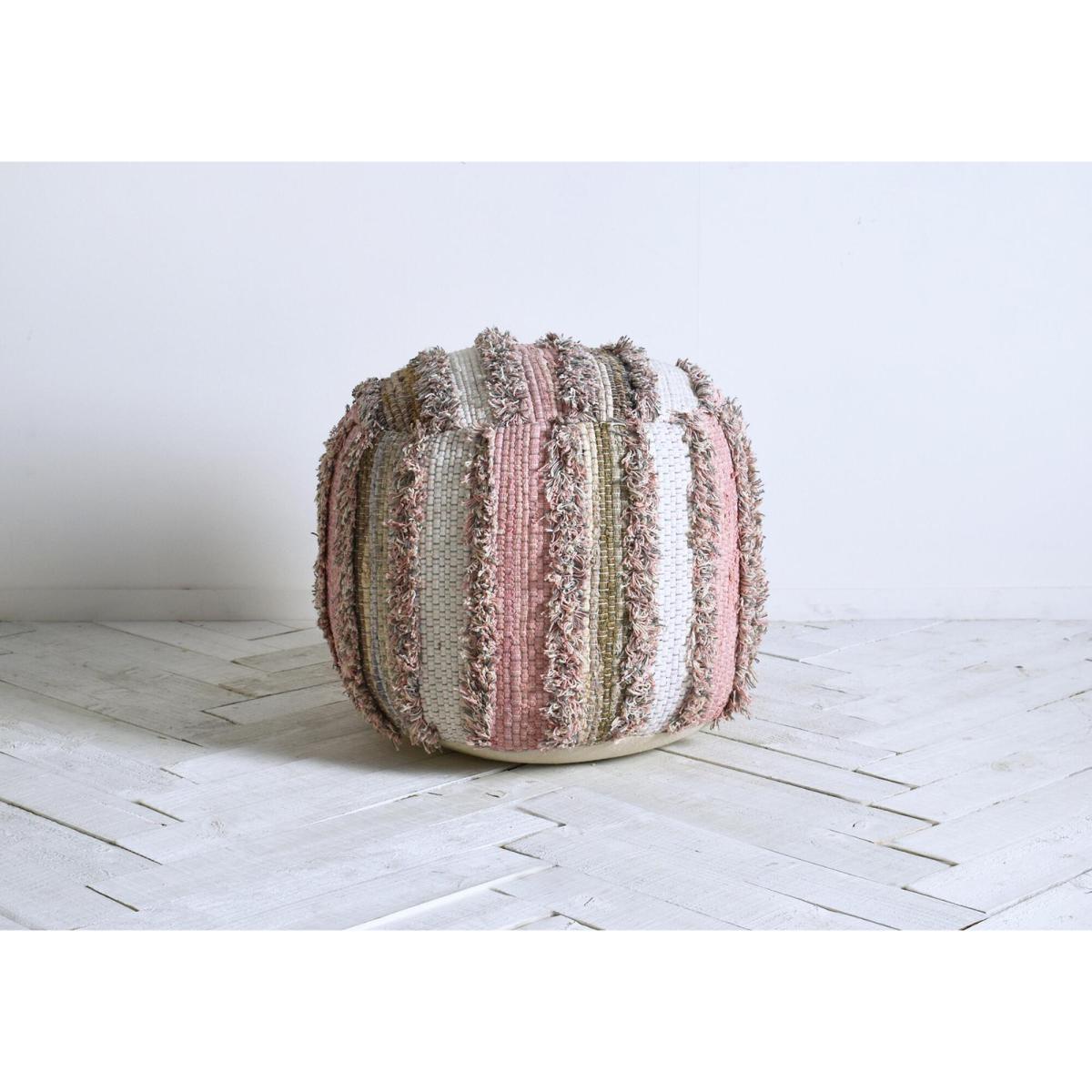 Transport yourself to a sunny bazaar as soon as you get home with the Zurich accent pouffe. This eye-catching design is all about texture and combines a rag rug weave cover with fray details in earthy hues. The beautiful stripe pattern in Blush, Green and Cream completes the look while softening the aesthetics of the Zurich, making it versatile enough to complement the decor of living rooms, bedrooms and even nursery rooms.