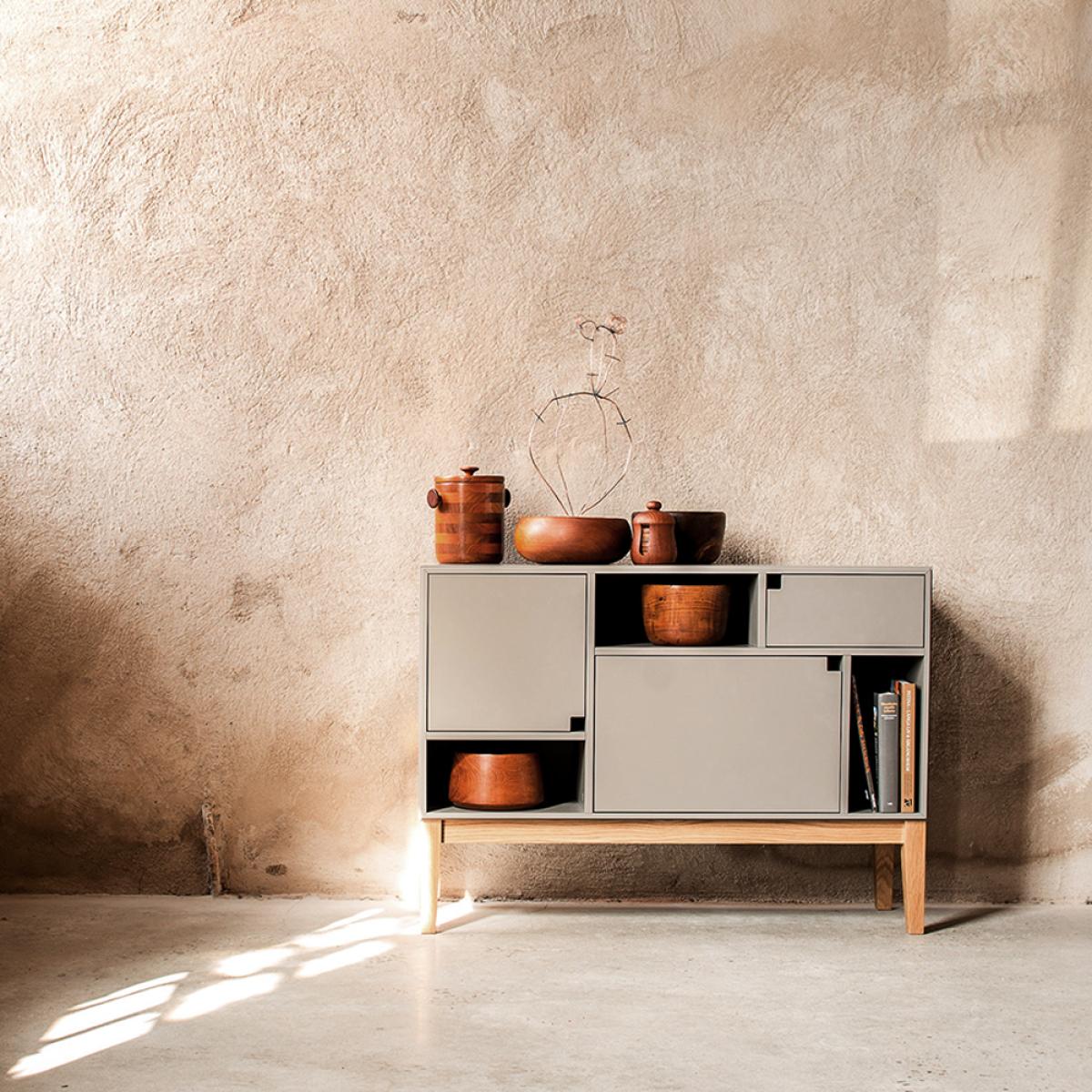 This sideboard is a versatile piece that works well in both contemporary and Scandi-inspired interiors, thanks to its sleek Mole grey finish and natural oak legs. I love how the modular design allows for practical storage solutions, making it perfect for living rooms, dining rooms, or even bedrooms. To style it, consider pairing with neutral tones and adding decorative items like vases, books, or artwork on top to create a curated look. Its clean lines and muted colour make it a flexible anchor piece that can be dressed up or down, depending on your overall decor scheme.