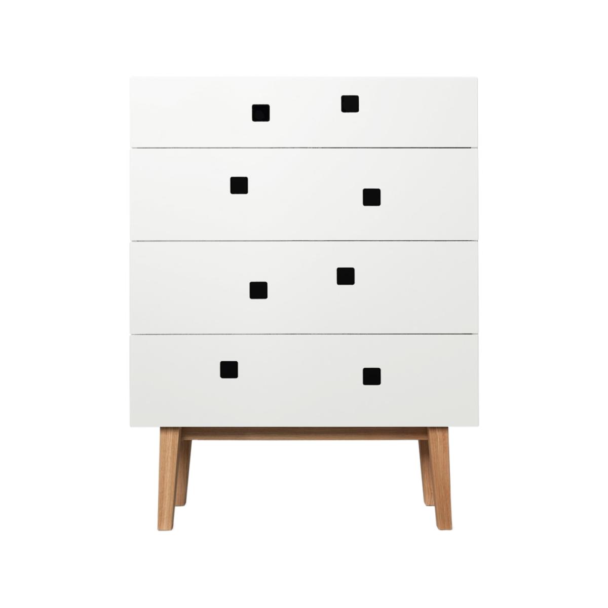 I love this stand for its clean, minimalist aesthetic and retro touches that make it versatile for various interiors. Its white finish keeps things fresh and bright, while the oak stand adds warmth and a touch of natural texture. It's particularly effective in modern, Scandinavian, or mid-century inspired schemes, but can also provide a lovely contrast in more eclectic or traditional spaces. Practical styling tips include pairing it with simple, understated decor like copper or matte black accessories, and placing a few colourful or textured objects on top to personalise without cluttering. Its compact size makes it ideal for bedrooms or living rooms where space is at a premium, and the drawers offer useful storage without overwhelming the room's overall look.