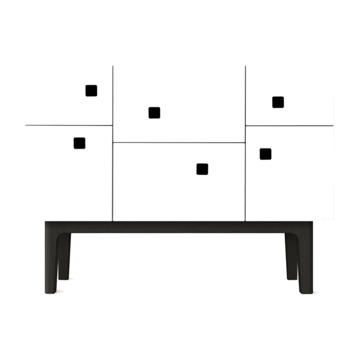 The Zweed Peep C2 cabinet in white and black lacquer offers a sleek, contemporary aesthetic that can elevate both minimalist and modern interiors. I love how its bold contrast makes it a statement piece, perfect for living rooms, hallways, or even dining spaces where a touch of sophistication is desired. When styling, consider pairing it with neutral or monochrome palettes to let its striking finish stand out, or incorporate metallic accents for a more luxe feel. Practical tips include using the cabinet's surface for display of curated decorative items, while the internal storage helps keep clutter out of sight. This piece works especially well in interiors that feature clean lines and a modernist vibe, but it also adds an edgy contrast to warmer, textured environments.